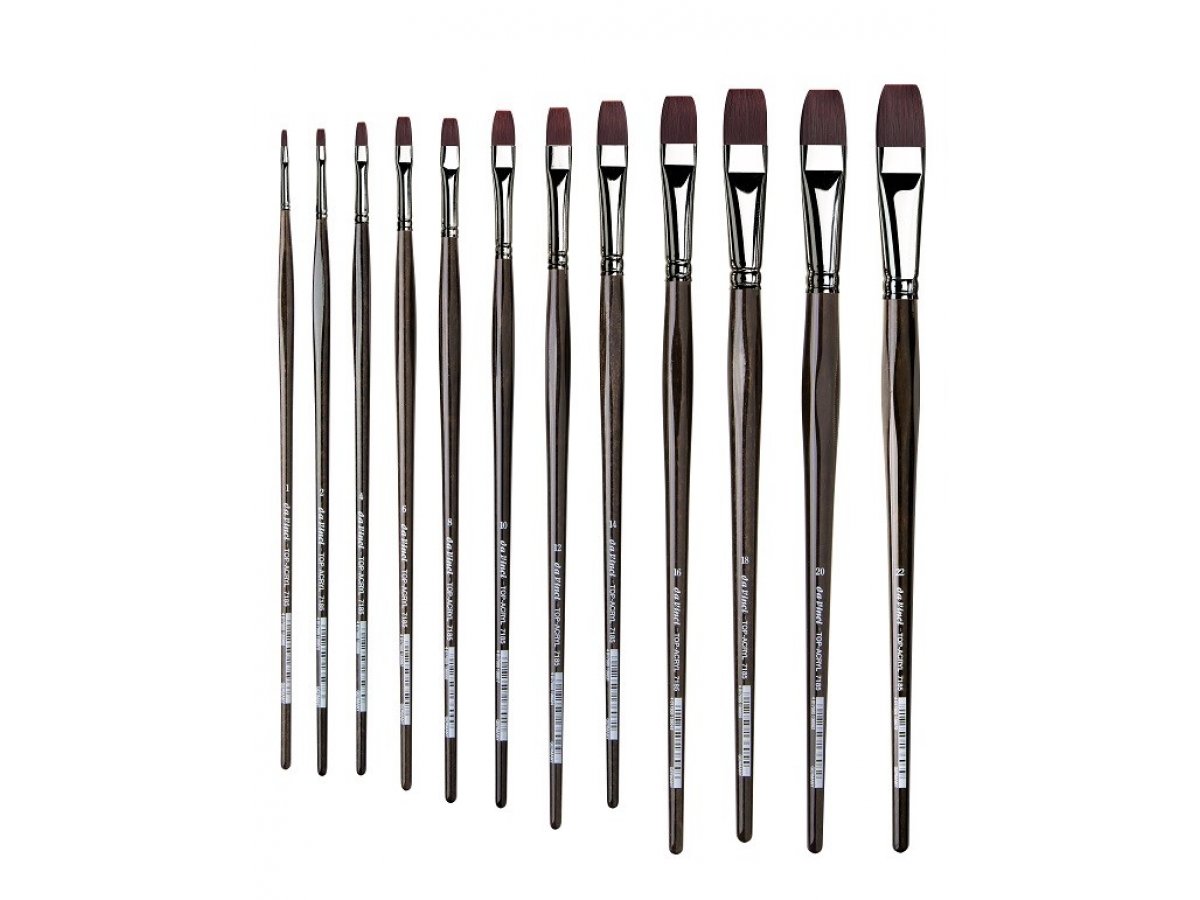TOP-ACRYL Da Vinci sintetički je kist srednje dugih dlaka za slikanje uljem i akrilom. Kistovi imaju kratke antracit lakirane drške, a dostupne su u debljinama od 1 do 18.