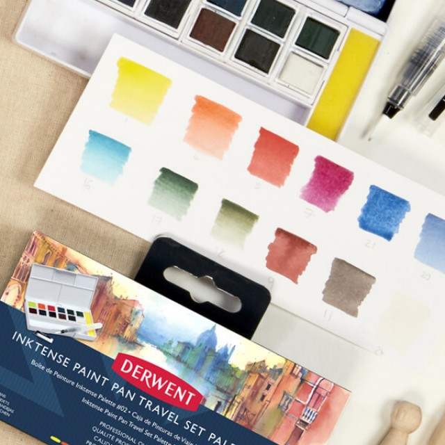 Derwent Inktense jedinstven je na tržištu. Kada se pomješa sa vodom, boja se pretvara u intenzivne nijanse. Jednom kad se boja osuši, ona je fiksirana stoga možete nanijeti novu boju. Za razliku od klasičnih akvarel boja, Inktense boje su permanentne. Mogu se koristiti na različitim podlogama, a idealne su za slikanje po tkanini kao što su svila i pamuk.