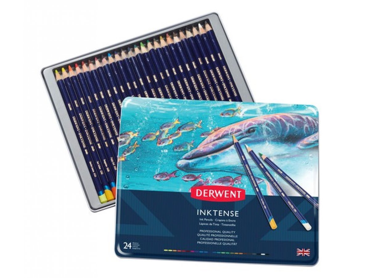 Derwent Inktense su tuševi u olovkama, jedinstveni na tržištu. Možete ih koristiti suhe, a ako ih pomiješate s vodom, boja se pretvara u intenzivne nijanse. Jednom kad se boja osuši, ona je fiksirana stoga možete nanijeti novu boju, a pošto je boja permanentna, idealna je za slikanje na tkanini kao što su svila i pamuk.