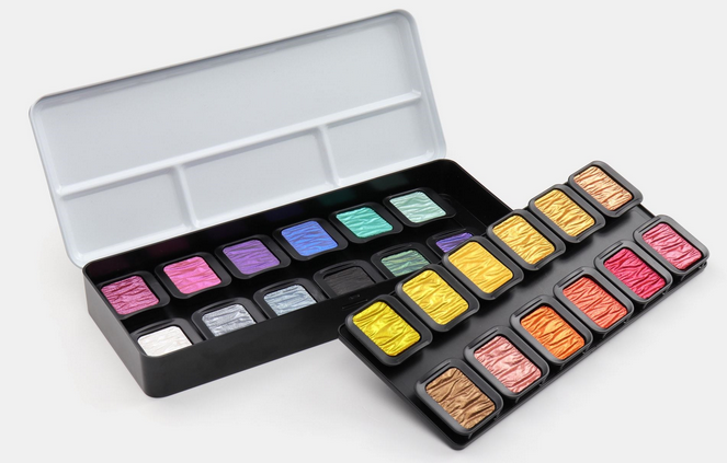 Kolekcija akvarela FINETEC sastoji se od niza sedefastih, prelijevajućih i Flip-Flop boja, a sve su izrađene od prirodnog tinjca iz etičkog izvora ili sintetičkih supstrata koje daju prekrasan sjaj.