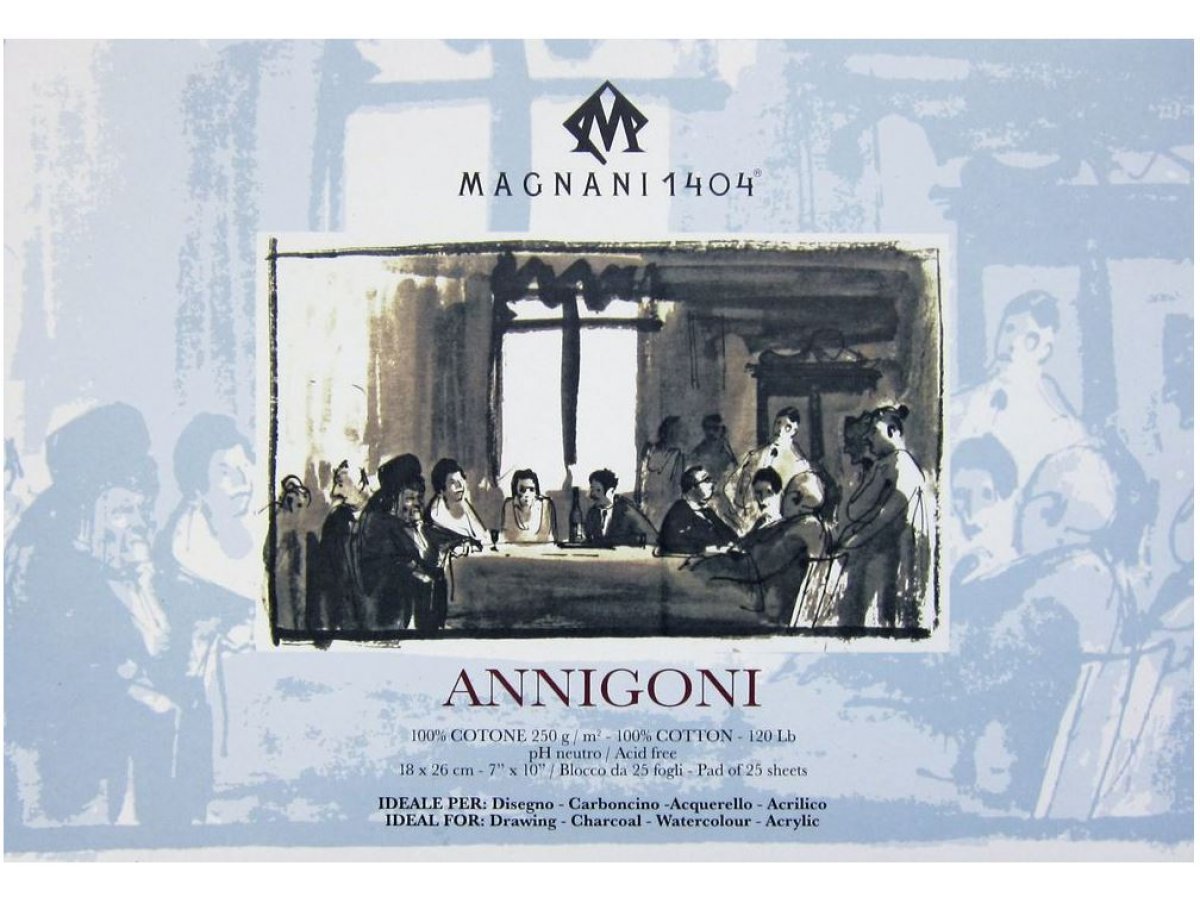 Magnani Annigoni papiri izrađeni su na cilindričnom situ od 100% pamuka bez kiseline i klora i dodatkom vunenih vlakana. Papiri su bež nijanse. Annigoni papiri imaju visoku otpornost na tamnjenje od UV zraka i garantiraju trajnost nanešenih boja.