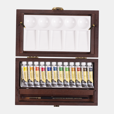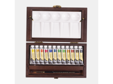 • 12 x 10 ml akvarel tuba (254 Permanent Lemon Yellow – 227 Yellow Ochre – 247 Azo Yellow Medium – 311 Vermilion – 336 Permanent Madder Lake – 411 Burnt Sienna – 416 Sepia – 506 Ultramarine Deep – 576 Phthalo Blue Greenish – 623 Sap Green – 662 Permanent Green – 708 Payne’s Grey)