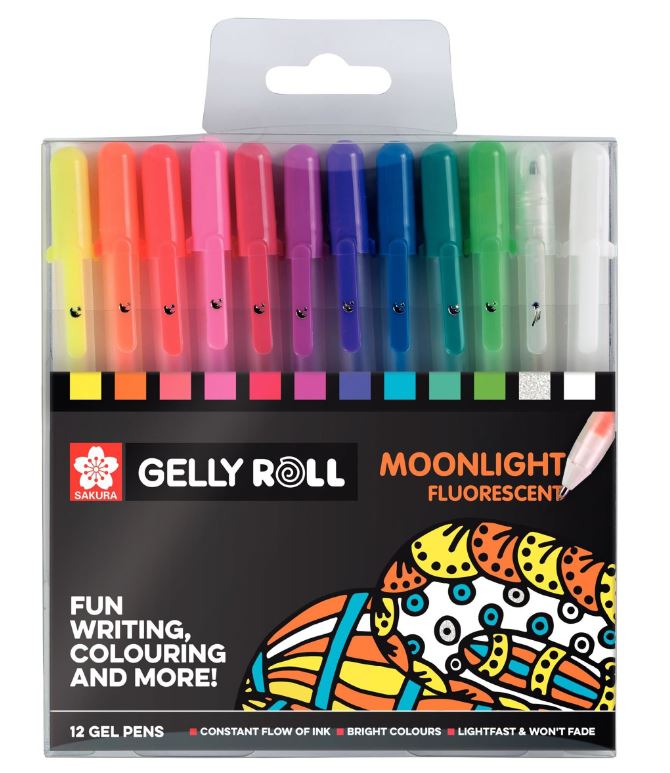 • Moonlight dolazi u dvije vrste: arhivska i fluorescentna tinta. Arhivske Gelly Roll Moonlight boje sadrže tintu na bazi pigmenta - kemijski postojanu, vodootpornu i otpornu na blijeđenje