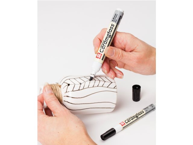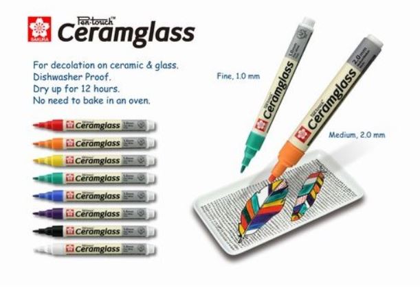 Pen Touch Ceramglass marker je za porculan, staklo i keramiku. To je jedinstveni marker za keramiku koji nije potrbno zapeći nakon nanošenja jer se boja sama posuši. Nakon 12 sati sušenja, vaše dekoracije mogu i u suđericu, a boje su postojane i neće izblijediti. Dostupno u 8 nijansi: crvena, žuta, plava, narančasta, zelena, ljubičasta, bijela i crna.